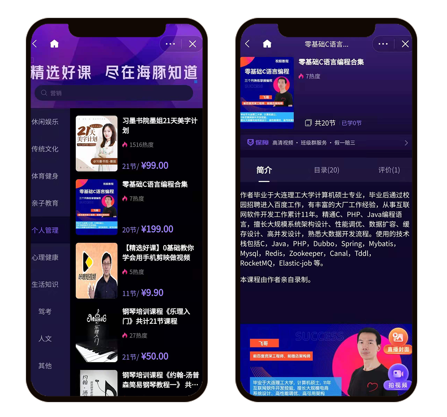 选择课程也是一门精细活,一定要选择销量高,评价好的课程,从课程封面、详情页、目录页都要一点一点做好分析,这样才能提高成交率。